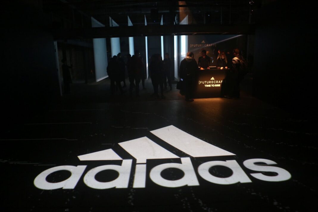 An Adidas logo is seen at the new Futurecraft shoe unveiling event in New York City, New York, U.S. April 6, 2017. REUTERS/Joe Penney/File Photo